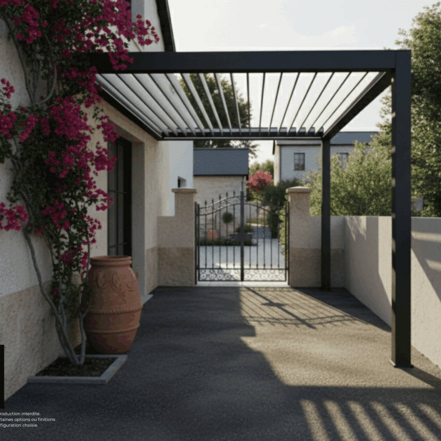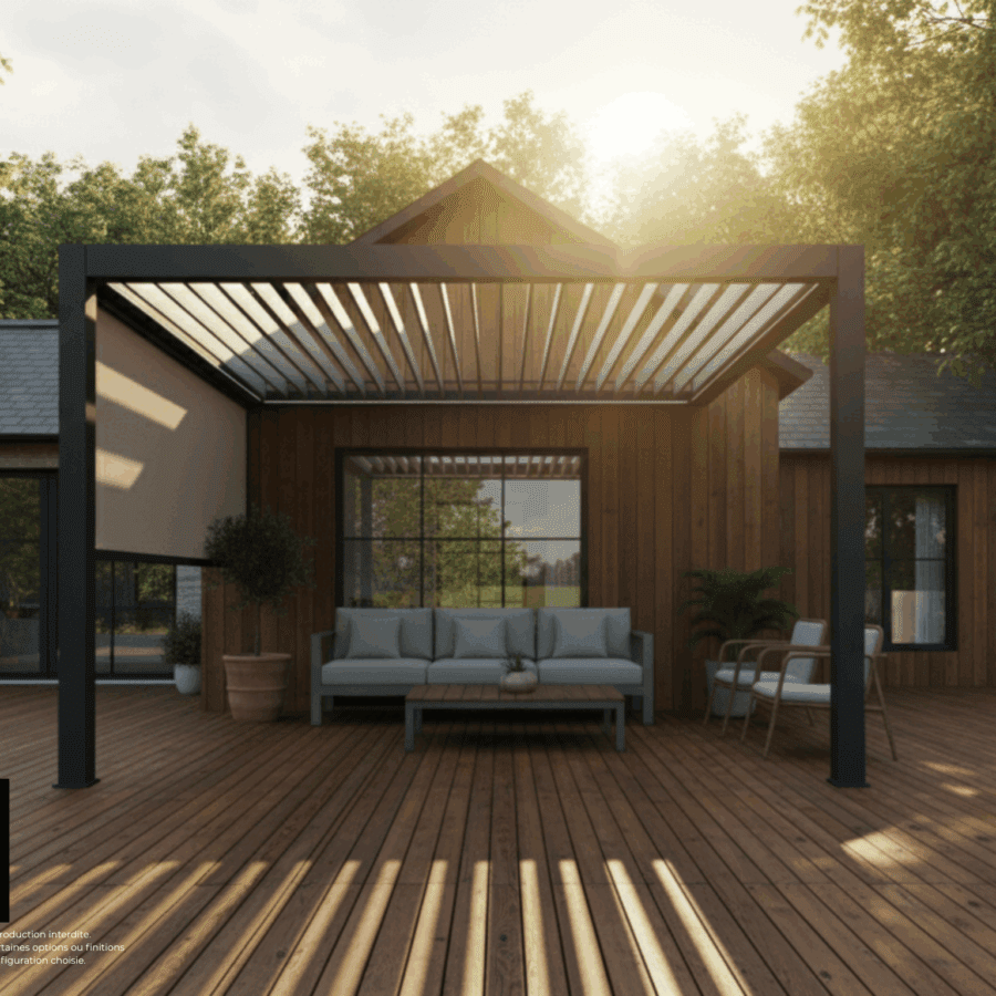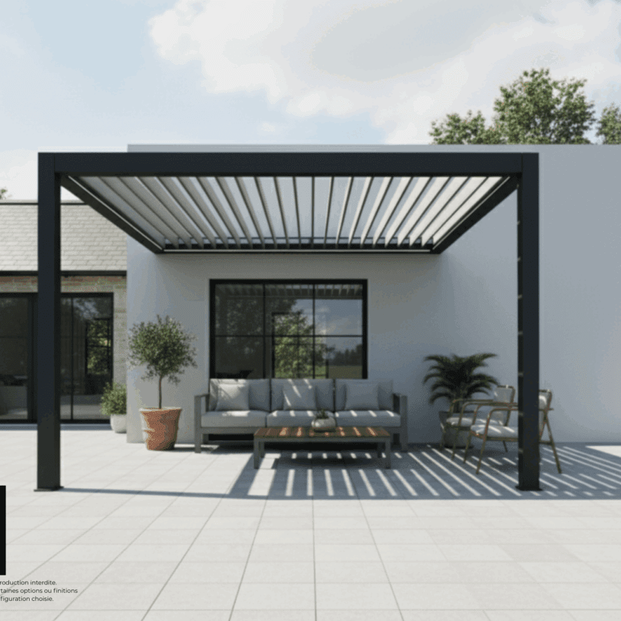 Votre espace extérieur, protégé et connecté à votre maison. Imaginez vos soirées d’été, à l’abri du soleil ou de la pluie, sous une pergola élégante et discrètement adossée à votre façade. Un espace ombragé pour vos repas en famille, vos lectures du dimanche ou vos apéros entre amis. La version adossée de notre pergola bioclimatique en kit vous offre confort et esthétisme, avec une installation simple et rapide, à faire soi-même grâce à notre notice de pose fournie.