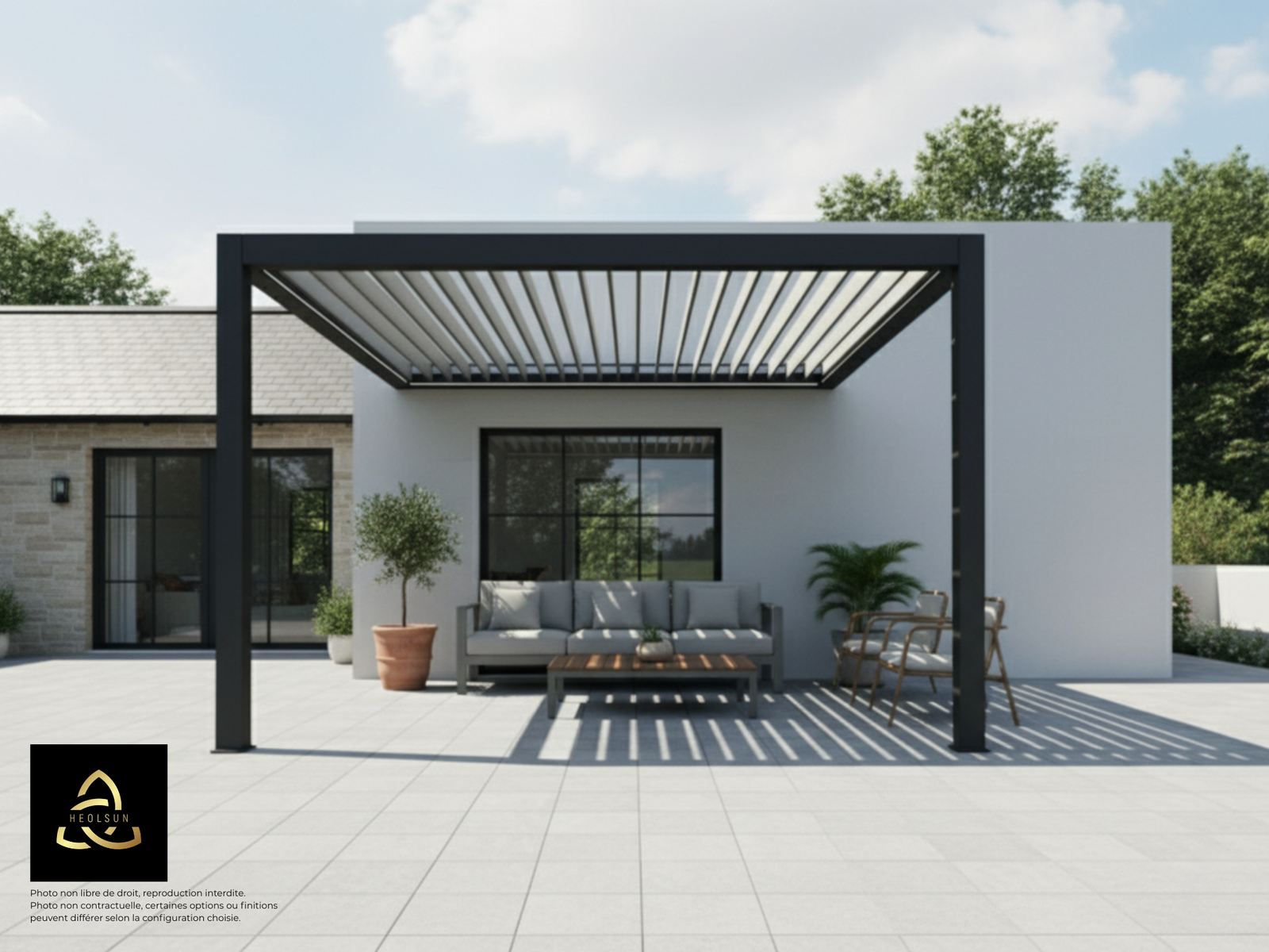 Avec ses poteaux de 105 mm, la structure reste solide tout en conservant une silhouette fine et discrète.
