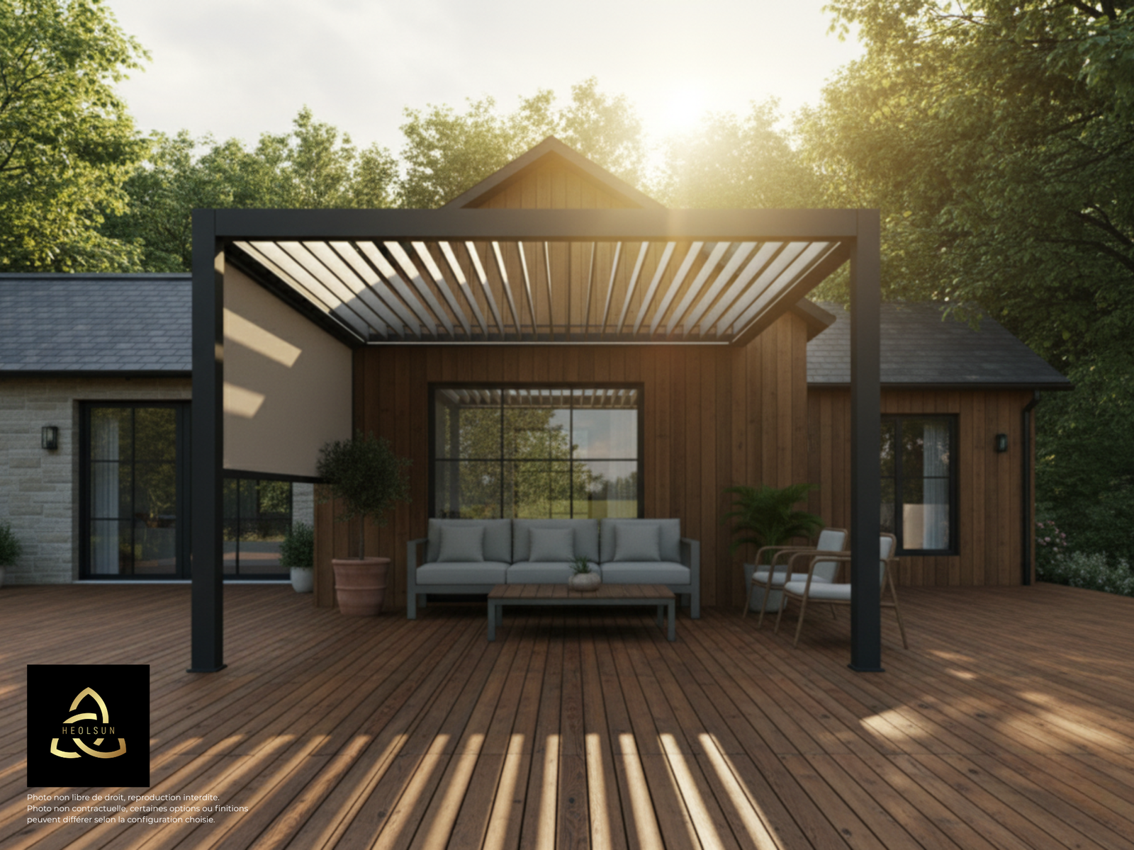 Ajoutez un éclairage LED, des stores verticaux pour vous protéger du vent, un capteur pluie/vent, des claustras ou même une baie vitrée coulissante pour créer une véritable pièce de vie semi-ouverte.